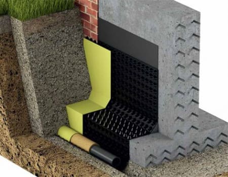 5. Монтаж профилированной мембраны или гидроизоляции фундамента при необходимости